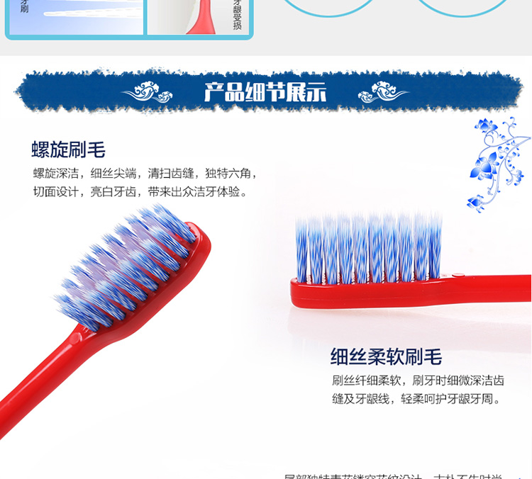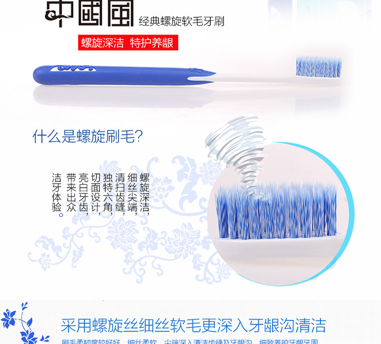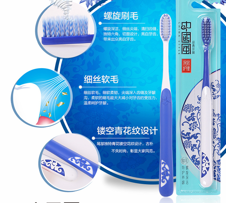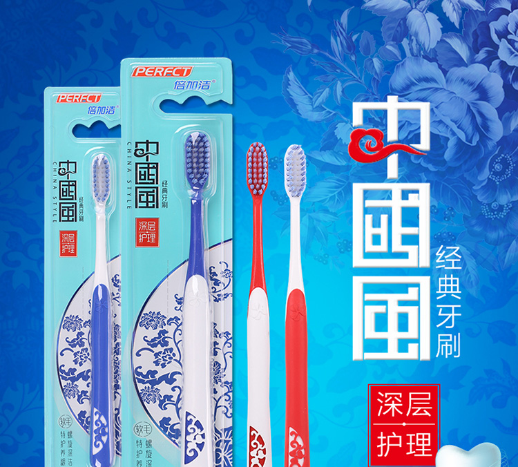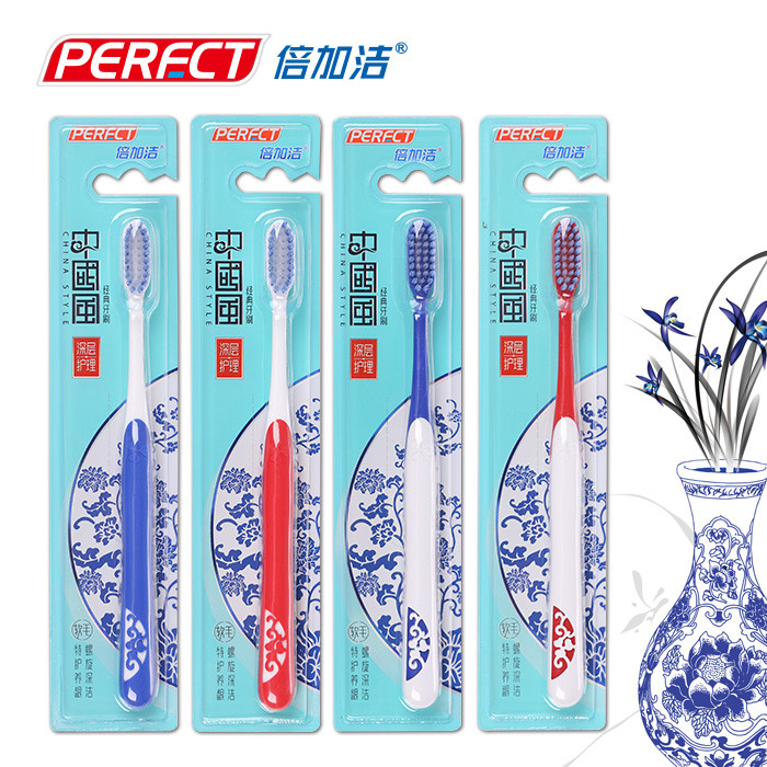 【倍加洁牙刷】德国进口成人螺旋刷丝 青花瓷经典中国风*12支