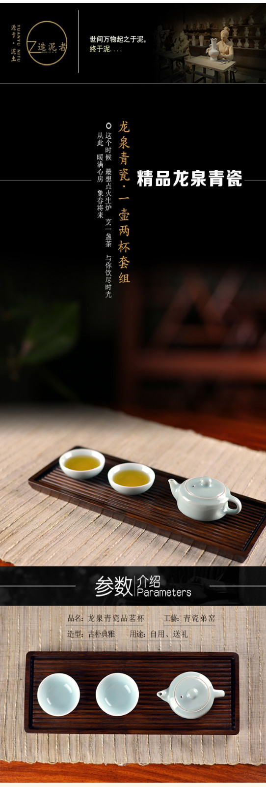 【盛维瓷业】龙泉青瓷一壶两杯