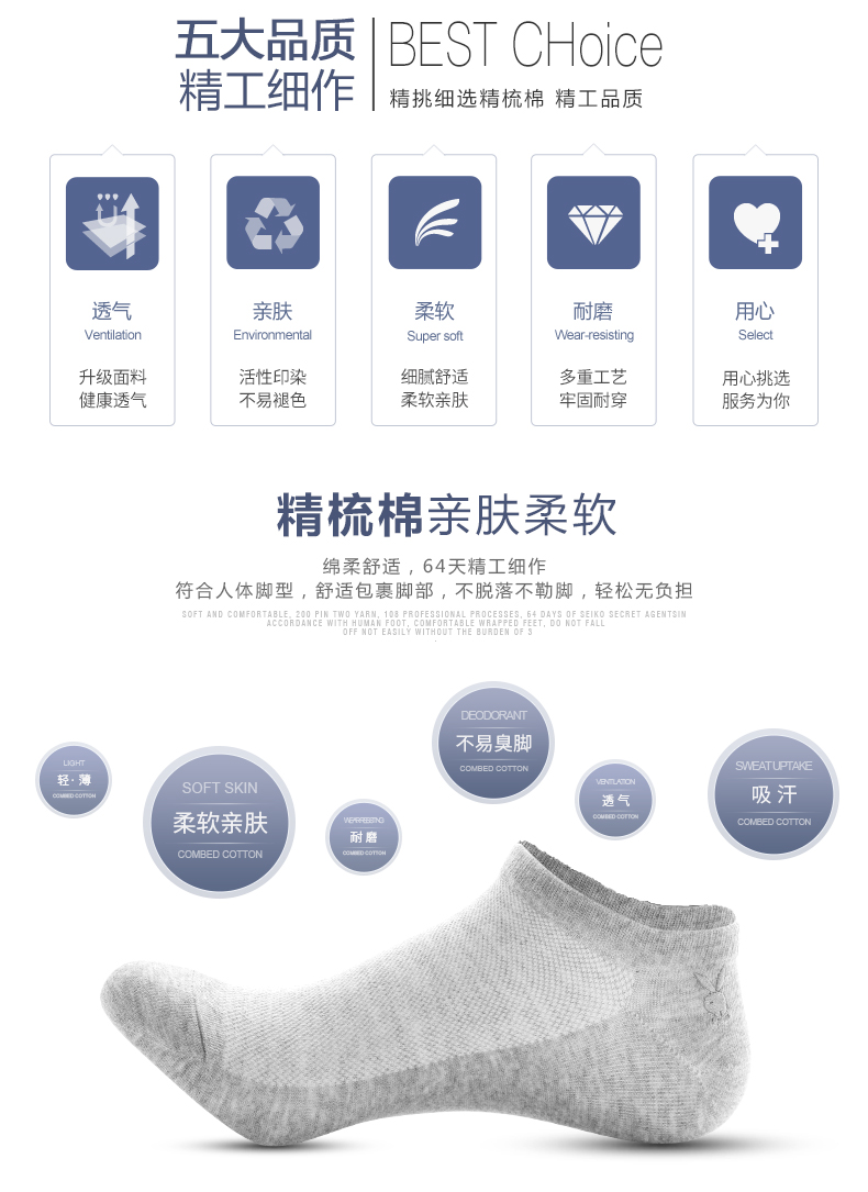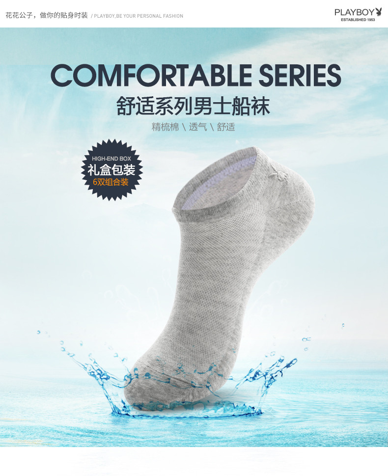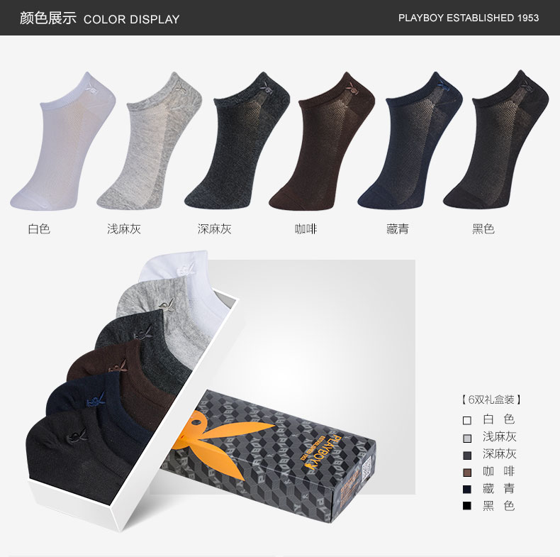 【花花公子】男士船袜